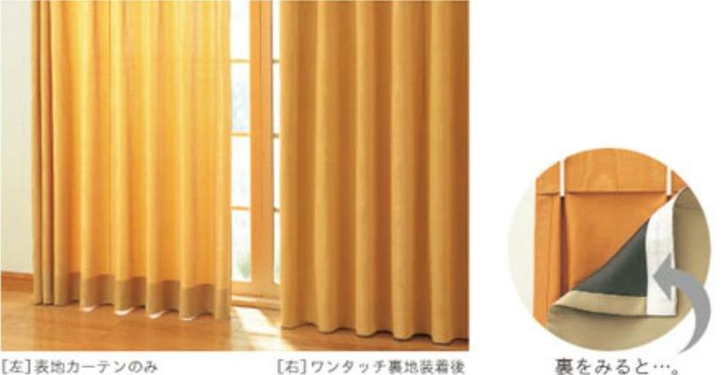 (写真はシンコール ワンタッチ裏地 の例)カーテンメーカー各社の生地で作れますし、カーテンショップでは既成サイズの物も販売しています。